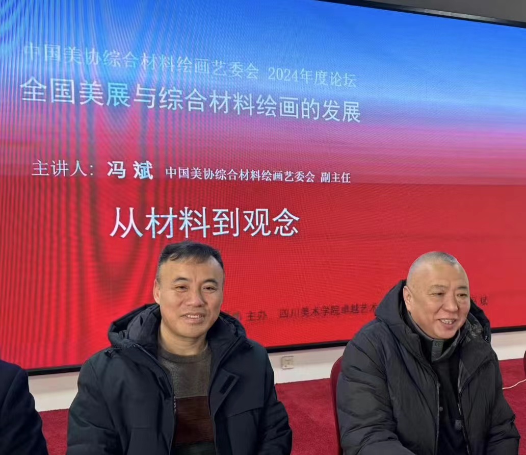 这一论坛由四川美术学院主办,“四川美术学院卓越艺术人才”项目任务人冯斌作为主持人,在时值综合材料绘画作为新兴的艺术门类,在全国美展设置独立展区的第十年之际,为备战2024第十四届全国美术作品展览,回顾和总结全国美展与综合材料绘画的发展历程,促进综合材料绘画的整体推进,提高综合材料绘画的创作质量而进行的专场研讨。