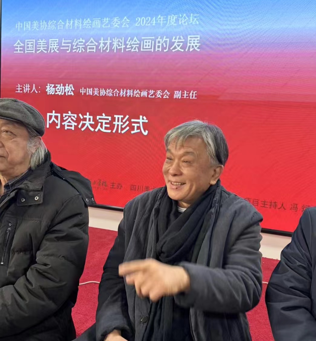 中国美协综合材料绘画艺委会副主任、中国美院教授杨劲松发言在论坛上主讲发言