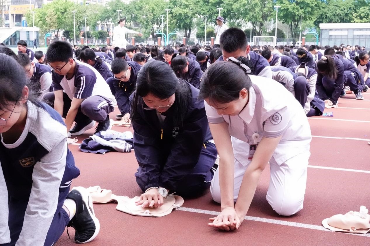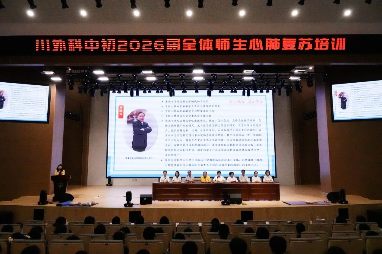 近日,四川外国语大学重庆科学城中学校(以下简称:川外科中)认真落实生命教育,联合中国心胸血管麻醉学会心肺复苏委员会,全面启动了一场旨在提升全校师生应急救护技能的培训活动。此次培训不仅是一场技能的传授,更是对生命敬畏之心的培养,为校园安全筑起了一道坚实的防线。