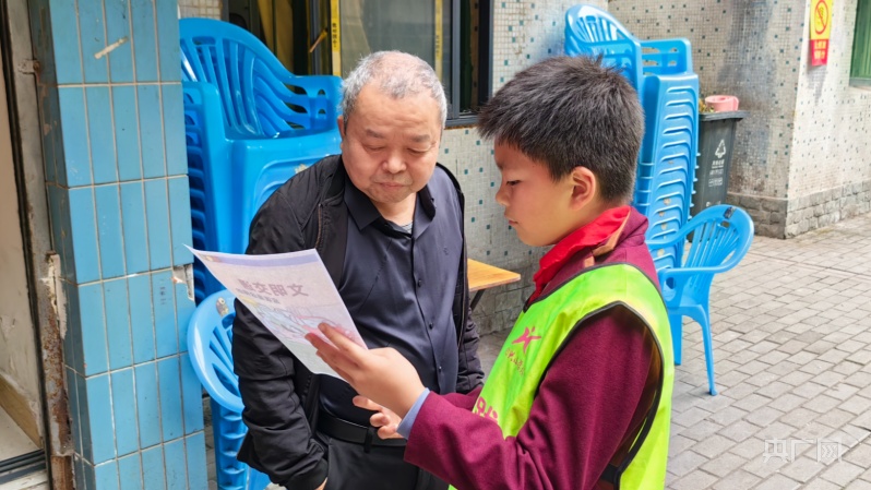 学生向居民发放宣传资料(渝北区回兴小学校供图)
