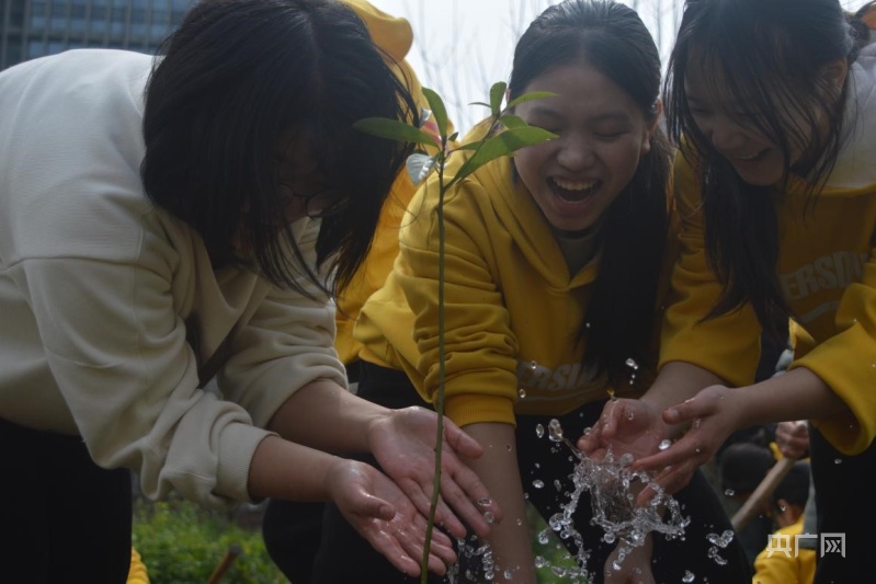 挖坑、护苗、填土、浇水,团员们三人一组,分工合作,共同种植一棵树苗。经过3个小时的努力,25棵金丝楠木树苗已被青年种植在城郊这片荒地上。未来,这些树苗将在这里扎根生长,与青年们一同成长为参天大树。