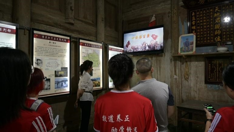 7月8日中午,经过五个多小时的跋涉,团队抵达黄家镇。团队成员跟随先锋社区负责人王正琴的脚步,来到了红军历史陈列馆。负责人详细介绍了红七师机炮连一排与黄家镇的军民鱼水情——“一张留言条”故事的历史渊源。