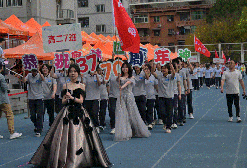 随着运动会正式开幕,田径场上顿时成为青春的海洋。短跑赛道上的疾风身影,跳高场地的凌空飞跃,看台上震耳欲聋的加油声浪,共同谱写着献给母校的生日赞歌。“看着孩子们在赛场上全力拼搏的模样,仿佛看见70年来无数三七学子奋斗报国的身影在这里重叠。”一位教师感慨道。