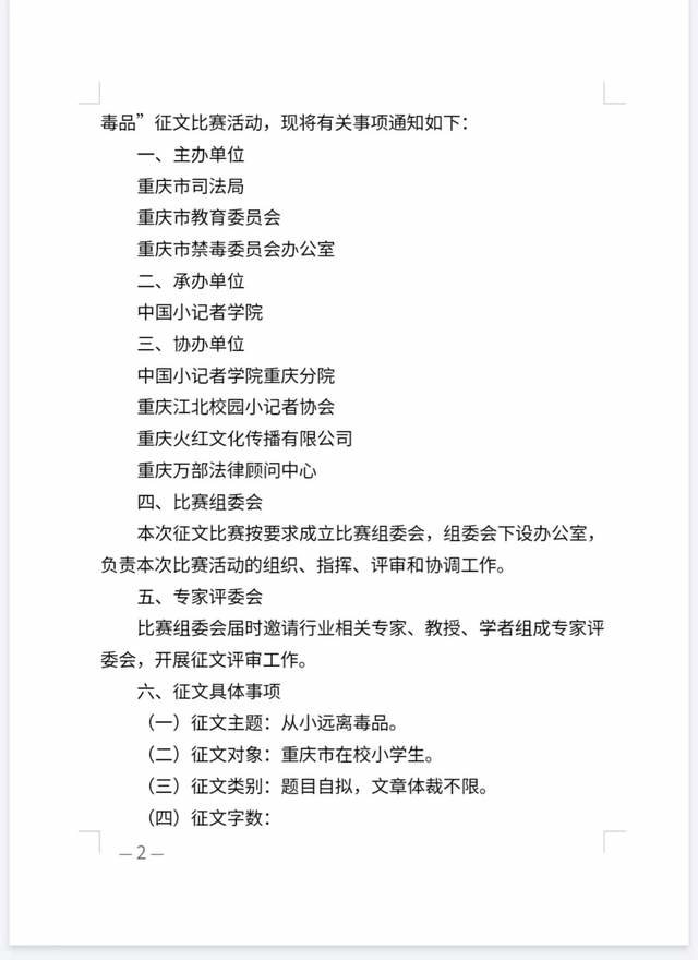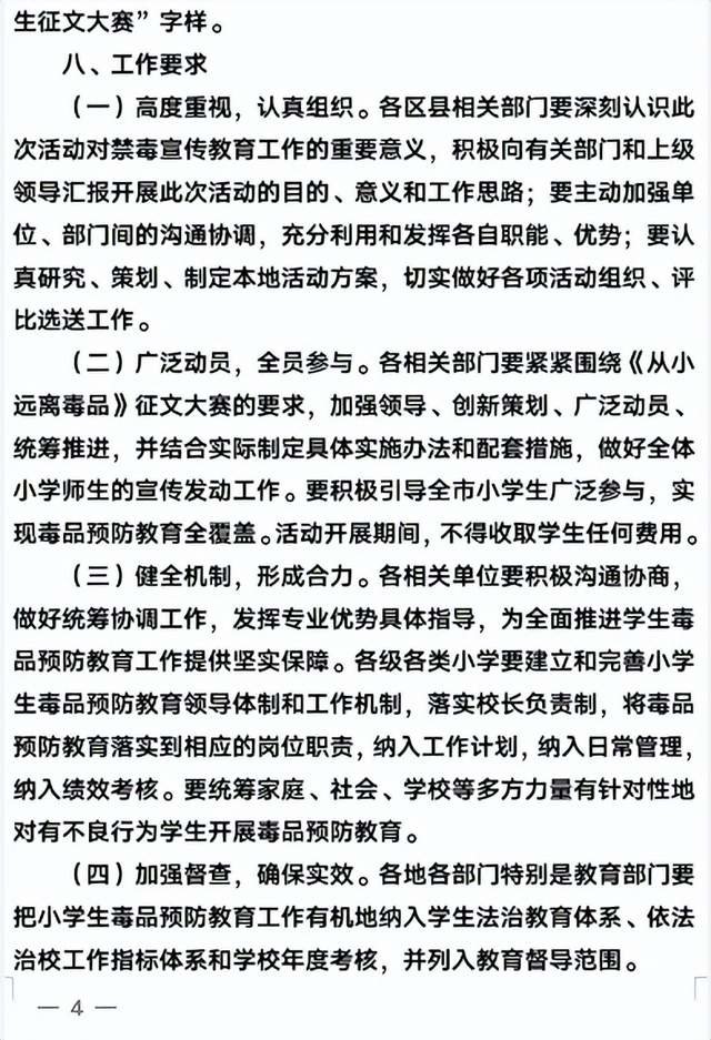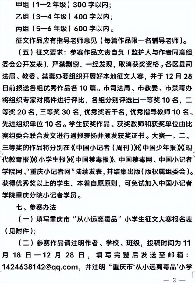 重庆市举办第七届“从小远离毒品”小学生征文活动