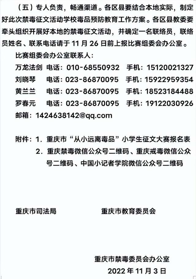 在“国家宪法日"到来之际,由重庆市司法局、重庆市教委、重庆市禁毒办主办,中国小记者学院承办的重庆市第七届“从小远离毒品”小学生征文活动正式启动。