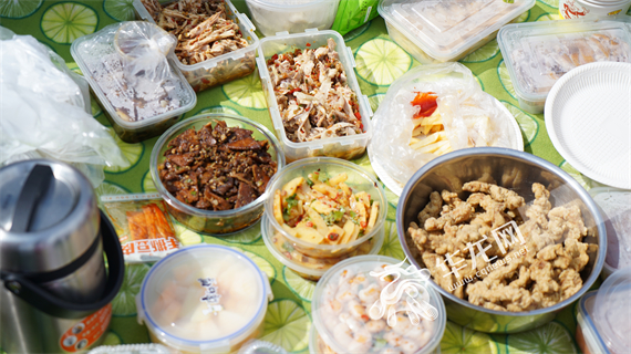 作为家委会的成员之一,谢小东的家长介绍,“我们昨天晚上就开始置办美食,一直忙到11点左右,凌晨起来打包,就是想让孩子们吃得卫生、吃得舒心!”切好的新鲜水果,美味的鸡腿、凉面,卤鸡蛋、卤鸡翅、各种卤味……各类美食同台“battle”。美食不仅好吃,而且健康。家长们齐上阵,分工合作,展示厨艺,为此次活动的食品安全“保驾护航”。