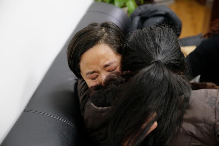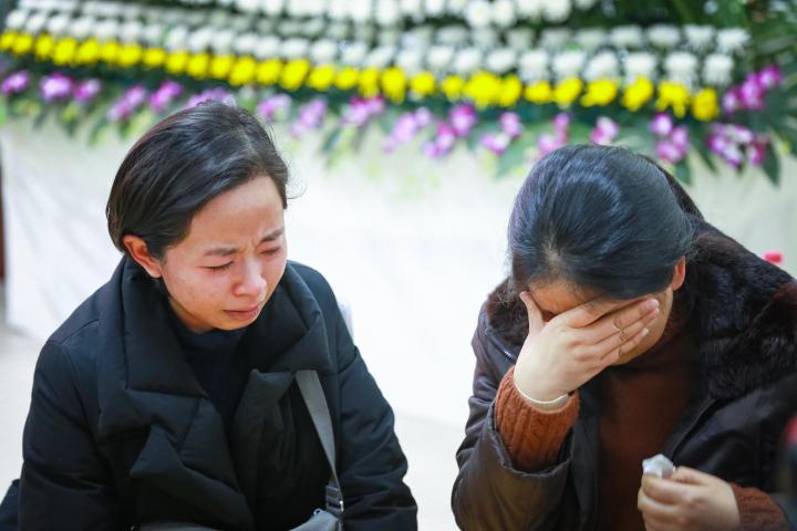 1月16日,姜瑞华的妻子和女儿听闻噩耗,抱头痛哭。记者 李文科 摄