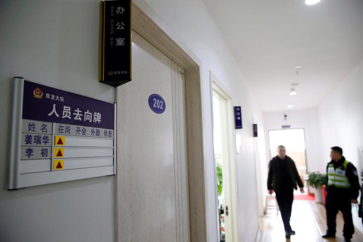 1月16日,人员去向牌上显示姜瑞华在岗。记者 李文科 摄