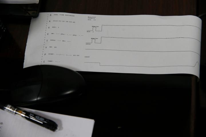 姜瑞华的办公桌上放着医生作最后抢救他时的心电图。记者 李文科 摄