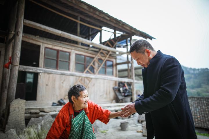 张认菊是邓明斌对口帮扶的贫困户之一,这是他们相处的第四个年头。“张婆婆两个儿子都在外地打工,家里没人照顾,第一次见面她就拉着我的手哭着问怎么办。”邓明斌看着张认菊家里狭小的房间堆满了杂物,锅里的剩菜早已发馊,邓明斌眼眶一下就红了。