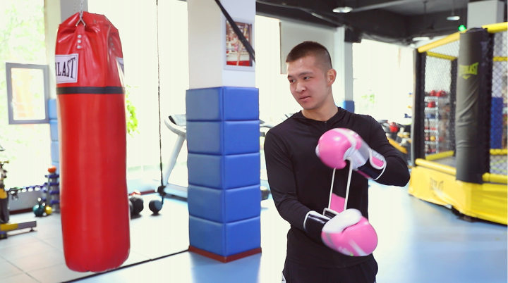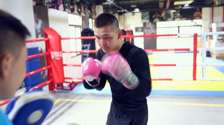 一年左右的时间,何礼从一个只会躲着、不敢出拳的“小绵羊”,蜕变成一个主动出击、拳法利落的“豹子”。何礼的微信头像是自己站在拳击台上的背影,身上挂着一副拳击手套。何礼的偶像是拳王泰森,会下载他的视频跟着一遍遍地模仿。