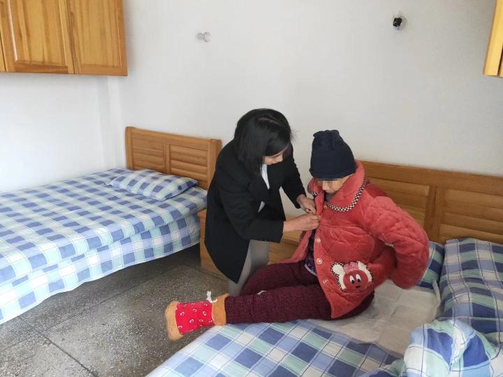 2015年,奉节县民政局启动贫困家庭失能人员集中供养政策,在全县建起了3所失能供养中心,对农村“五保”、城市“三无”、城乡低保和农村建卡贫困户等贫困家庭中的失能人员进行集中供养,草堂镇失能供养中心便是其中之一。在这里像刘兴这样被集中供养帮扶的对象还有83人,而他们有着一个共同的“家长”,那就是栗春容。