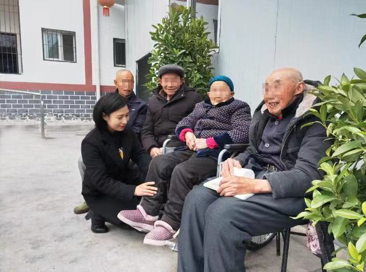 贴完春联已临近中午,栗春容还没来得及喝上一口水,就赶紧招呼同事,给中心里的失能人员们准备午饭。回头看到坐在院坝里的一位老人,她赶紧上前招呼着:“刘老师,天冷了,衣服要多穿,不要着凉了。”