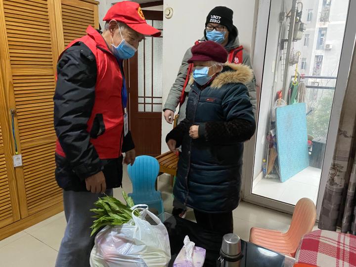 吕庭高和其他志愿者一起为胡婆婆送菜。华龙网-新重庆客户端 首席记者 佘振芳 摄