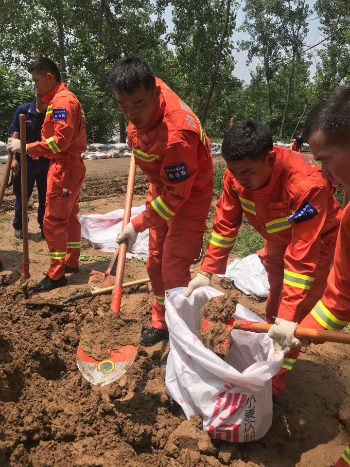 “快!快!大家动作快一点!”脚下的泥土就像沼泽,它们时刻困扰着来回奔跑的抢险战士,有人摔倒了,没事,立马站起,不能打乱统一的抢险节奏;有人手滑了,没事,立马捡起,不能让抢险物资从自己眼前被冲走;有人一下扛起两个沙袋,好重,但,不怕,还有战友在帮忙扶稳。