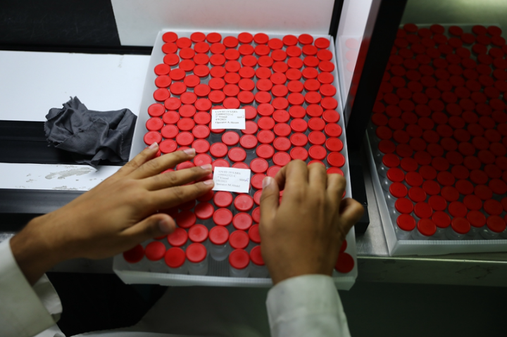 ↑ 2021年9月6日,在埃及吉萨的埃及生物制品与疫苗公司,工作人员检查生产出的新冠疫苗。埃及是非洲大陆第一个同中国合作生产新冠疫苗的国家。