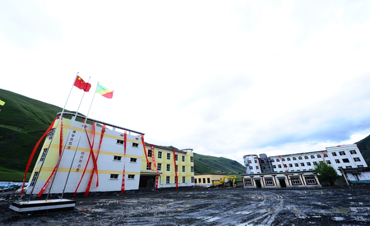 ↑ 这是2012年7月22日在青海省玉树藏族自治州称多县拍摄的中刚友谊小学。2010年4月,青海玉树发生强烈地震后,刚果共和国向灾区捐建一所小学,帮助300多名藏族儿童重返校园。该校取名为中刚友谊小学。