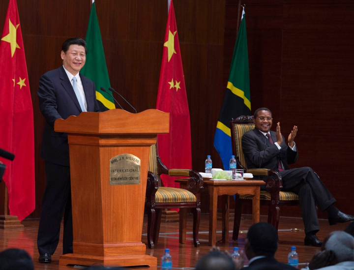 ↑ 2013年3月25日,国家主席习近平在坦桑尼亚达累斯萨拉姆尼雷尔国际会议中心发表演讲。
