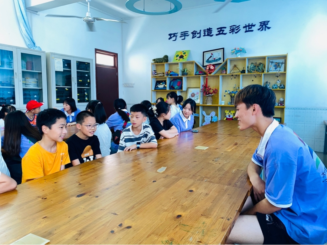 在八塘镇小学校,实践队为20余名留守儿童组织开展了趣味班会、剪纸手工小课堂等活动。一场趣味游戏拉近了孩子们与实践队成员的距离,一张普通的卡纸变成了生动的图案,现场一片欢声笑语,让孩子们在快乐学习、快乐活动中增长知识、提高素质。