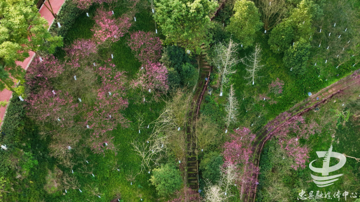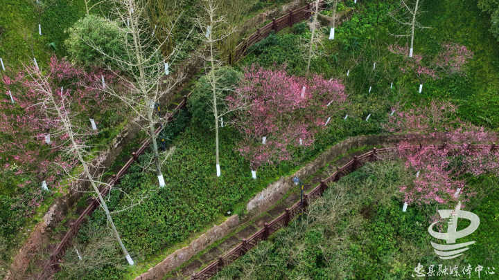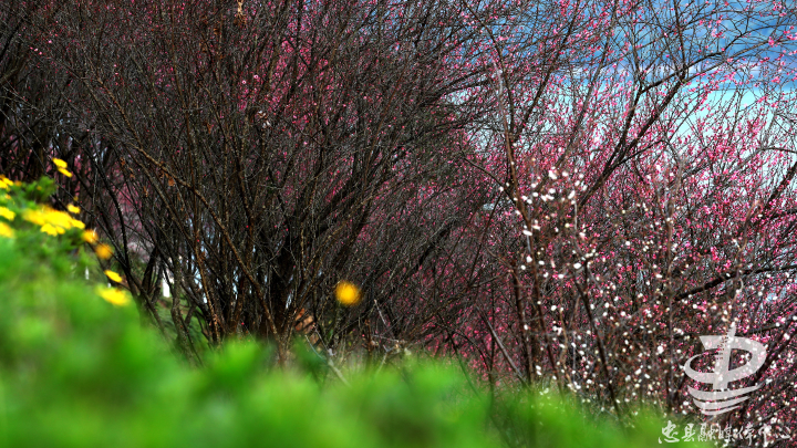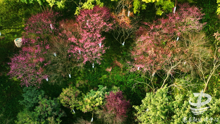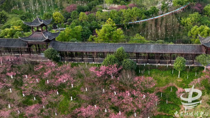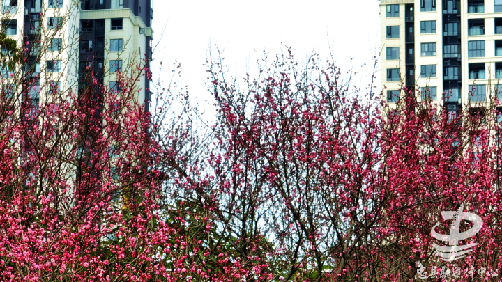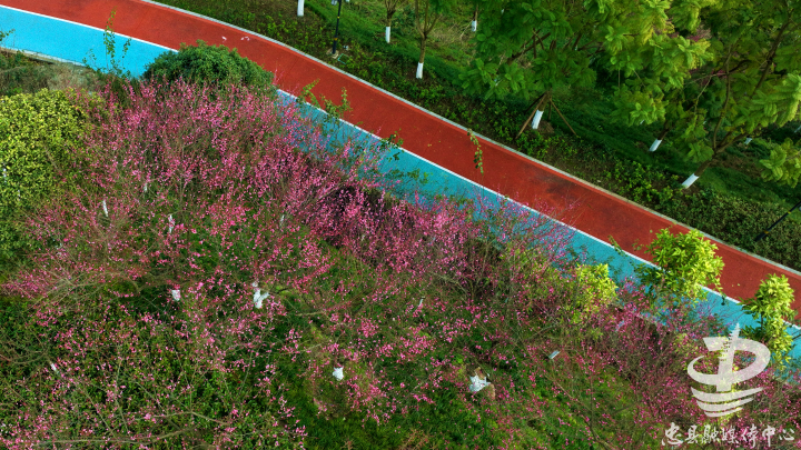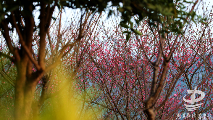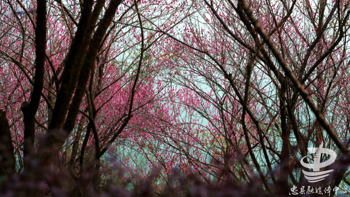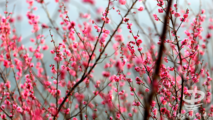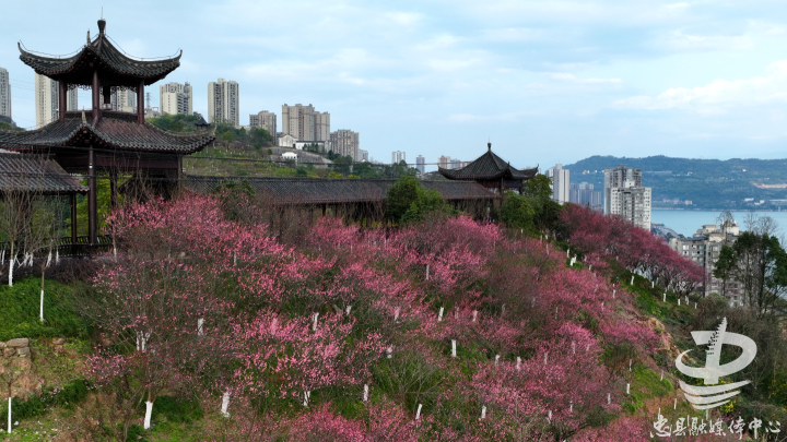 近日,在忠县白公生态文化公园,数千株红梅迎风绽放。登高远望,林间红梅耀眼,如烟似霞,与公园绿植、远山近水共同构成一幅绝美的生态画卷。