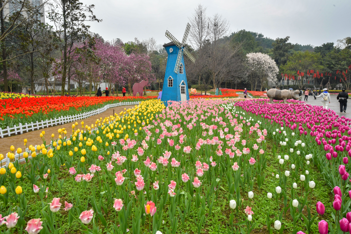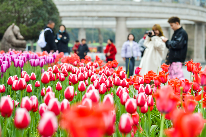 重庆动物园已被俏皮可人的郁金香装点得繁花似锦、生机勃发。每一株郁金香独立绽放,其半开半合的优雅神态和芬芳四溢的香气,仿佛含笑迎候着每一位游客,更热切期待你与春姑娘共赴这场花之盛宴。