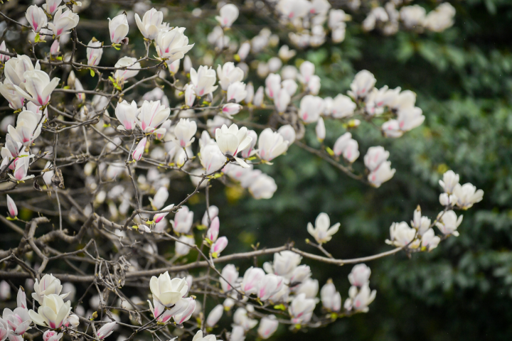 在华岩镇幸福公园内,玉兰花竞相绽放,在高空交织,形成一片花海,美得让人惊艳。花枝随风摇曳,一派春意盎然,让人感受到阳春三月的浓浓春意。