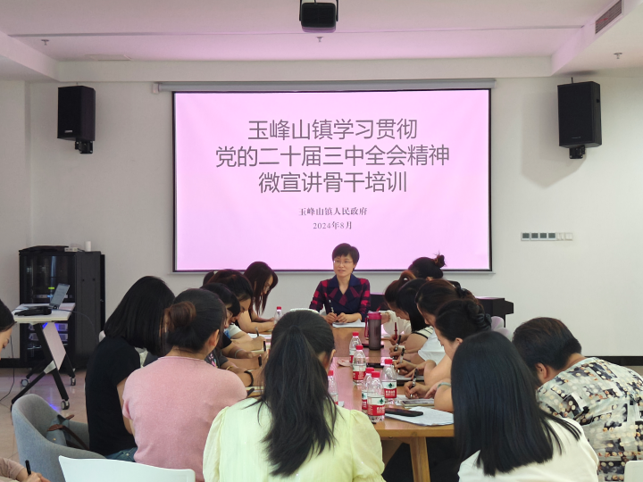 8月19日,玉峰山镇组织开展学习贯彻党的二十届三中全会精神微宣讲骨干培训,来自辖区11个村居的宣传文化干部及镇、村、网格骨干宣讲员共20人参加。