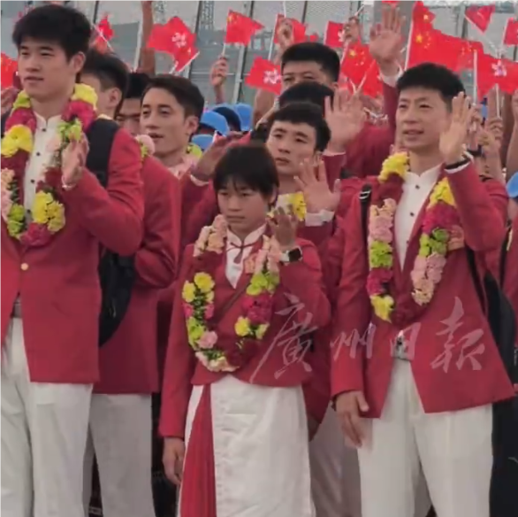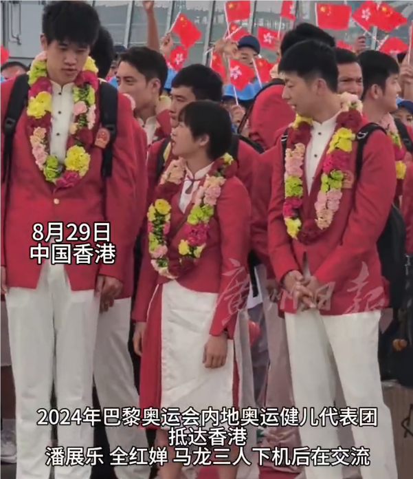8月29日,马龙、全红婵、潘展乐等65名运动员和8名教练员组成的内地奥运健儿代表团,抵达香港,开始为期3天的交流活动。香港为奥运健儿举行欢迎仪式,并为运动员们戴上大花环。