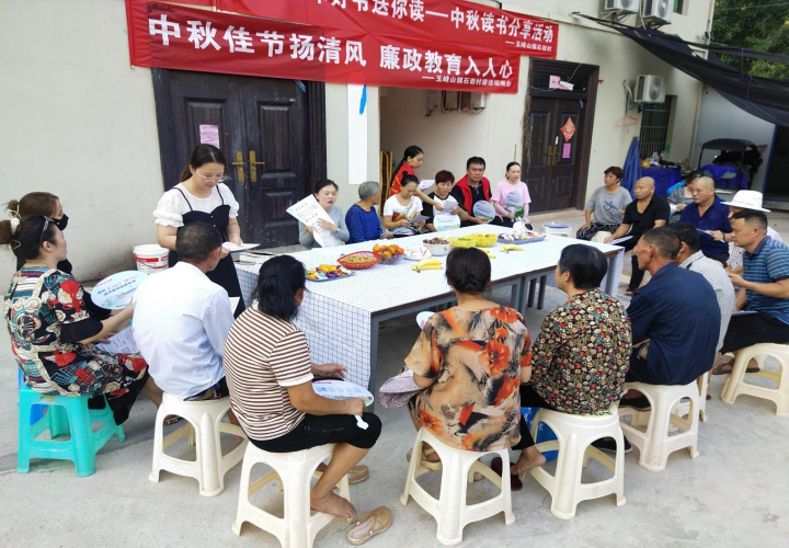 9月14日,在中秋佳节来临之际,玉峰山镇石岩村组织党员干部、群众代表在10社廉情驿站召开坝坝会,弘扬廉洁文化,营造风清气正的节日氛围。