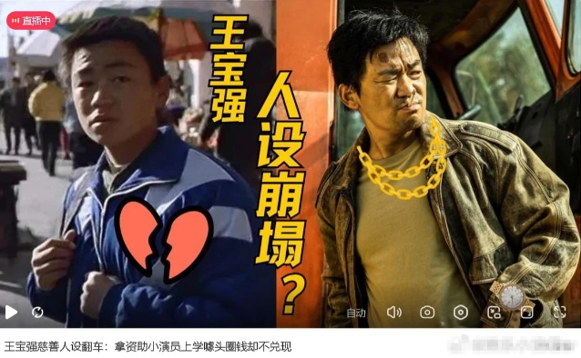 10月16日,狗仔“推理君江小宴”直播曝王宝强慈善人设翻车,称其拿资助小演员上学噱头圈钱却不兑现。狗仔称王宝强的电影《八角笼中》上映时其为了票房承诺做慈善,结果钱赚了,私下不兑现。