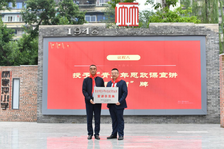 为表彰在思政课宣讲中表现突出的学生,主办方向学生代表授予了“青少年思政课小宣讲员”旗帜,并向他们赠送了红岩故事书籍,鼓励他们继续发扬红岩精神,传承红色基因。同时,主办方向杨家坪小学授予了“青少年思政课宣讲示范岗”牌,以肯定学校在思政课建设方面的努力和成绩。