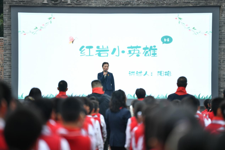 随后,杨家坪小学校校长范小红在致辞中表示,学校将以此次活动为契机,进一步加强爱国主义教育,引导学生树立正确的世界观、人生观、价值观,让红岩精神在青少年立德树人、凝心铸魂中发挥关键作用。