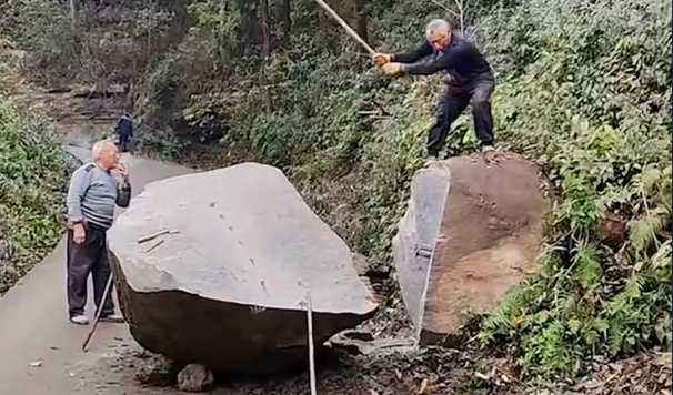 现代版愚公移山!老人用传统解石技艺清除巨石