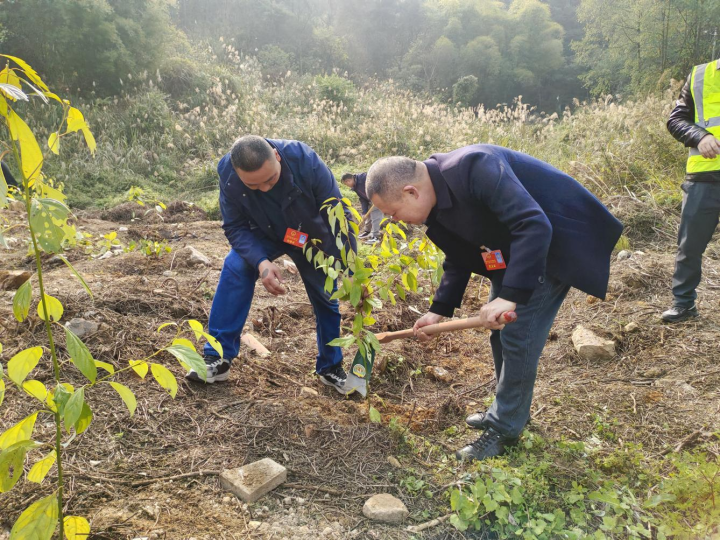活动当天,党员干部、区镇人大代表、村社代表和志愿者共100余人踊跃参与,早早来到植树现场,大家热情高涨,干劲十足。在专业技术人员的指导下,大家分工明确,配合默契。有的挥锹铲土,有的扶苗培土,有的提水浇灌,力求确保树苗的成活率,现场一片热火朝天的劳动景象。