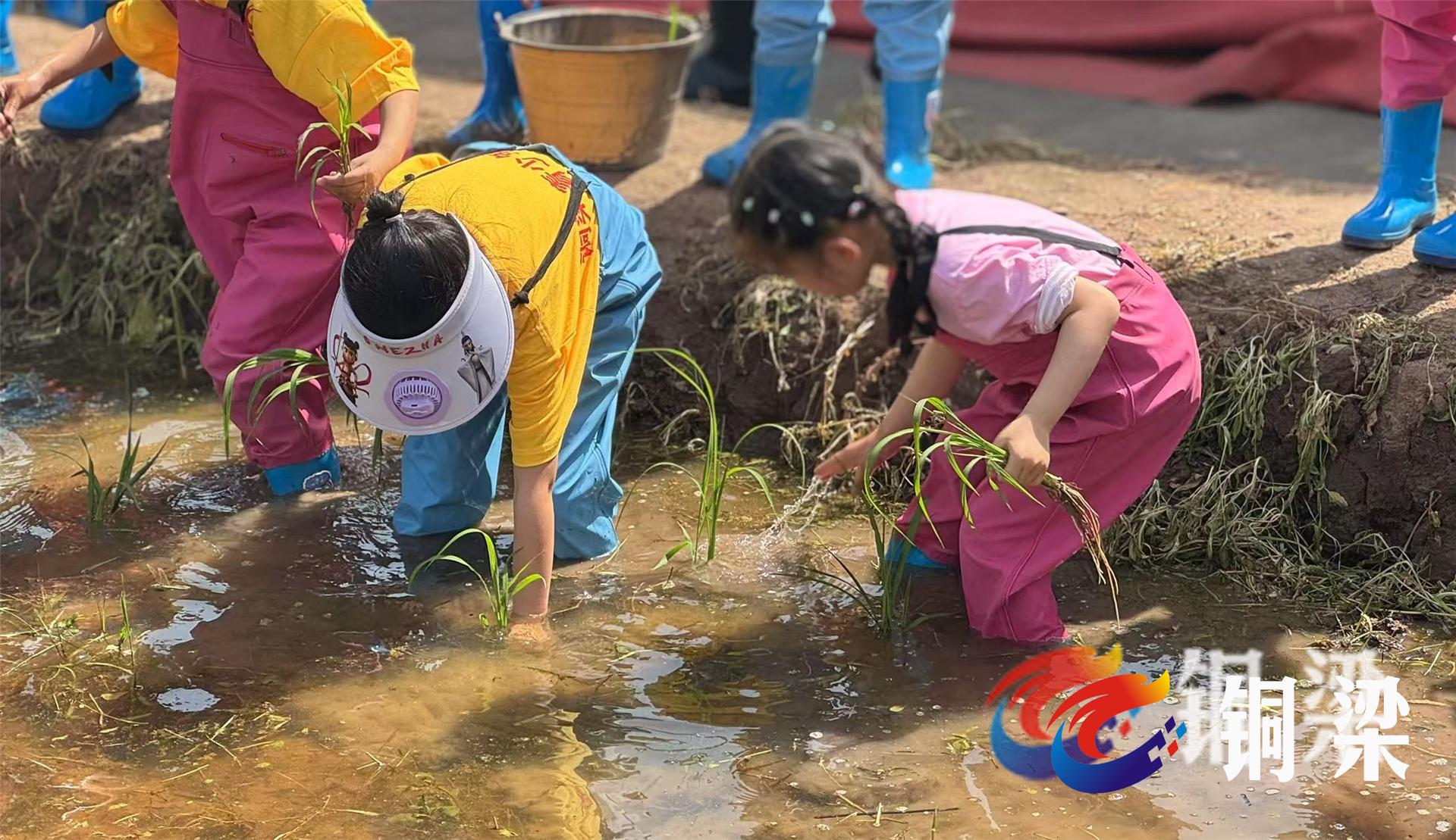 最后,在“稻田插秧”实践环节,孩子们穿上水裤、踏入水田,将一株株秧苗插入田地。“以前只在书上看到过插秧,今天第一次下田,虽然很累,但看到自己种下的秧苗,特别有成就感!”小学生张诗涵说。
