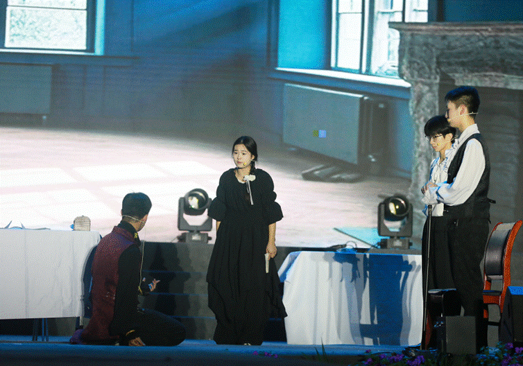 第二篇章“五育并举毓英才”同样精彩不断。教师节目《追光者》,展现了教师的风采;学校舞蹈团的舞蹈《月影》,如梦如幻;初二 1 班的班级合唱《朝代歌》,唱响历史韵味;初中戏剧社的话剧《天工开物》,演绎传统智慧。