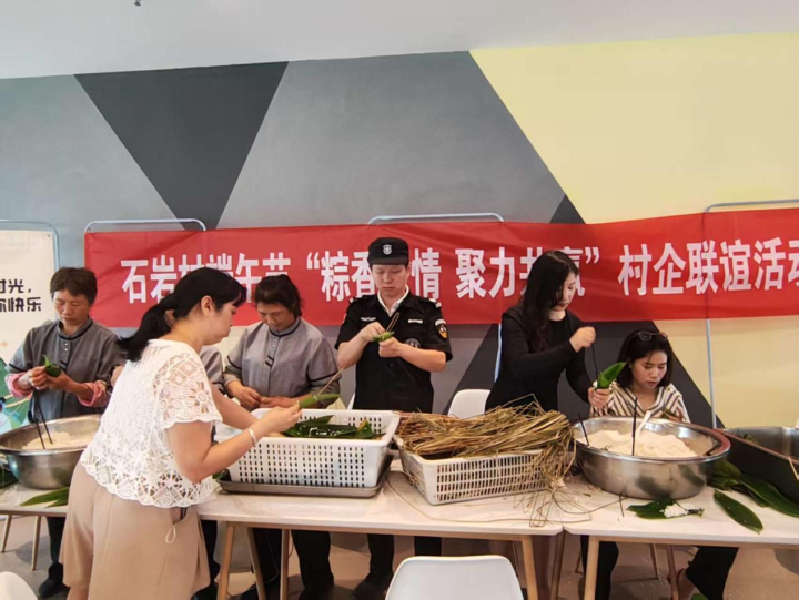 石岩村至辖区企业联东U谷开展"粽香传情·聚力共赢"主题活动。活动现场,大家围坐在一起,在“包粽达人”的指导下,新手小白们迫不及待地拿粽叶、做漏斗、填糯米、包裹、捆绑,一切都井然有序地进行着,绿叶包裹着晶莹的糯米,彩绳缠绕着思念四溢。一叶裹健康,一线绑情长。在一双双辛勤的巧手下转眼就变成了一个个诱人的粽子。活动结束后,大家将包好的粽子统一蒸煮,分享品尝自己的劳动成果,甜蜜的粽香与温馨的情谊交织在一起,弥漫在整个活动现场。