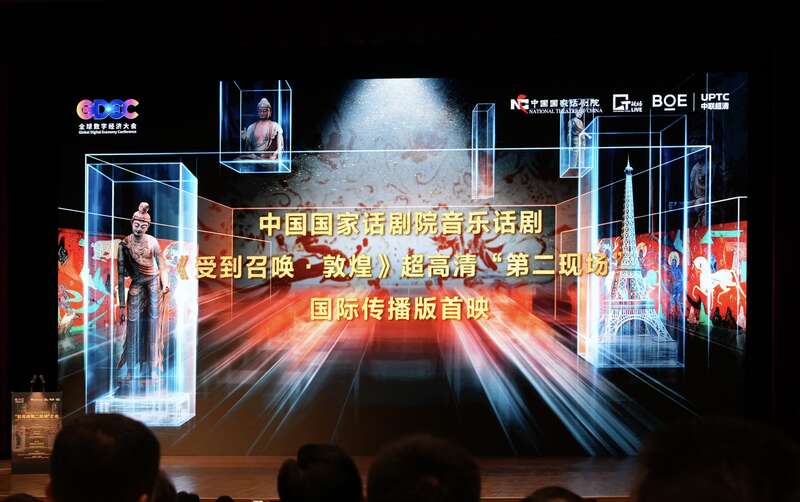 在近日举办的2025全球数字经济大会上,在来自法国、瑞士、新加坡、中国香港和中国澳门等14个国家和地区的国际组织代表,及近900名海内外观众的共同见证下,中国国家话剧院音乐话剧《受到召唤·敦煌》“超高清第二现场”国际传播版首映。