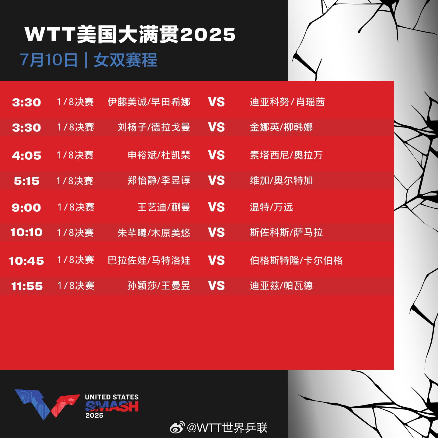 11:55 孙颖莎/王曼昱 VS 迪亚兹/帕瓦德