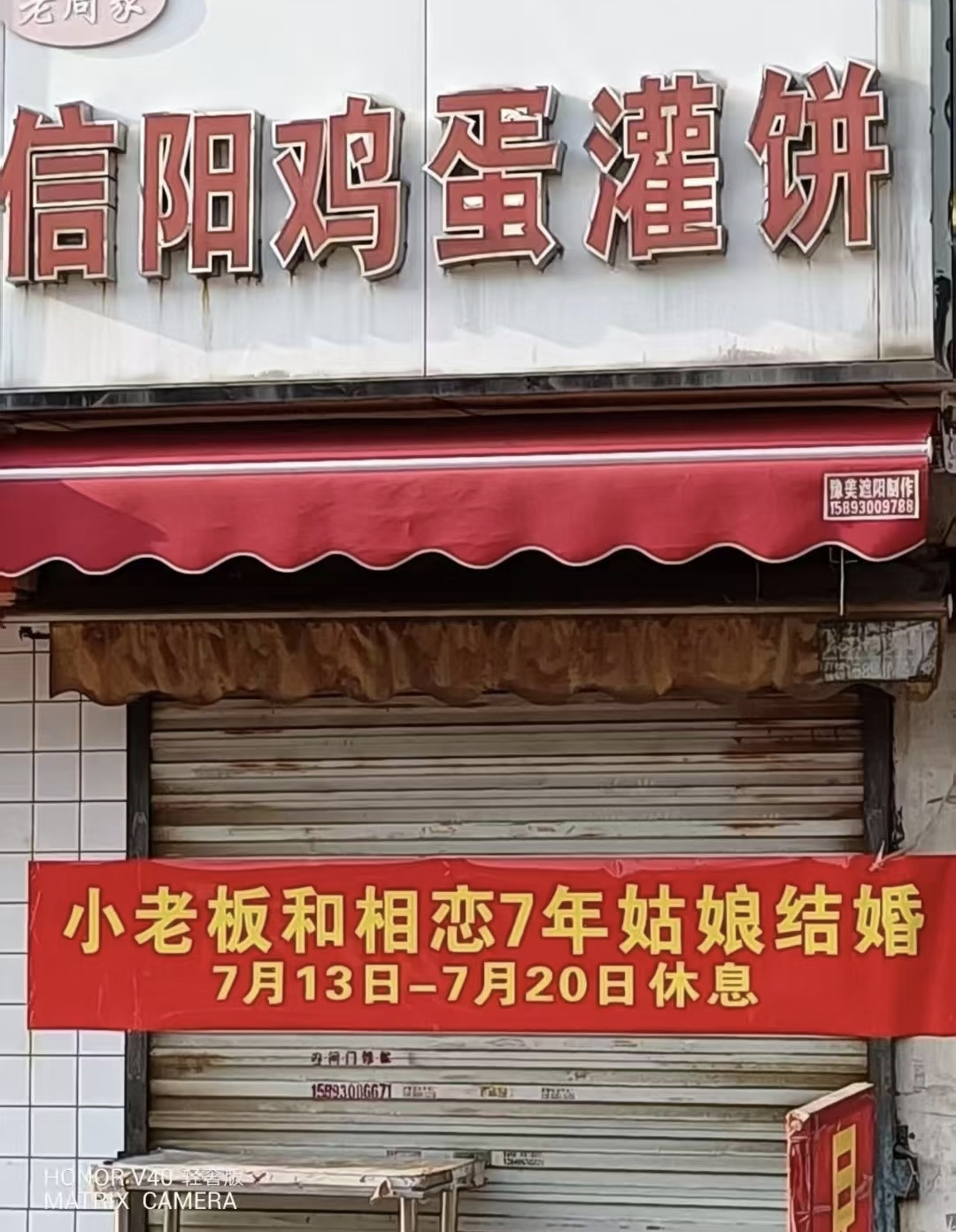 近日,河南焦作一家鸡蛋灌饼店因悬挂“大儿子和相恋七年的姑娘结婚”的横幅宣告闭店而走红网络。随后,网友发现附近另有两家鸡蛋灌饼店也挂出类似结婚横幅,被网友戏称是不是为“家族企业”能够如此默契先后挂出横幅忙婚礼。