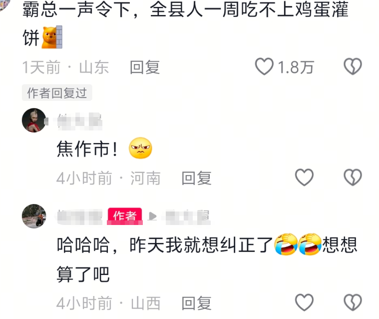 对于网友们的调侃杨“焦作人7天吃不上鸡蛋灌饼”,杨女士澄清这过于夸张,当地还有很多其他摊位和店面售卖。她强调,店主们是“非常朴实的、平凡的劳动者”。