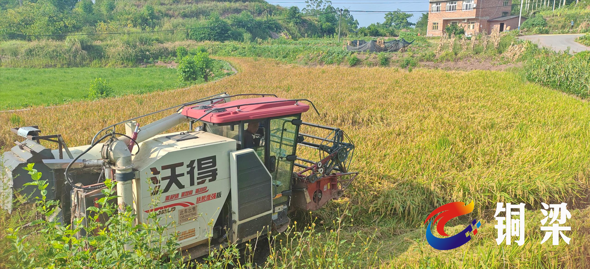 眼下正值稻谷收割期。近来,在铜梁区石鱼镇的千亩稻田里,来自湖南、湖北等地的20余台收割机穿梭其间,金黄的稻穗被卷入机器,饱满的谷粒随即落入储粮仓,一派繁忙的景象。