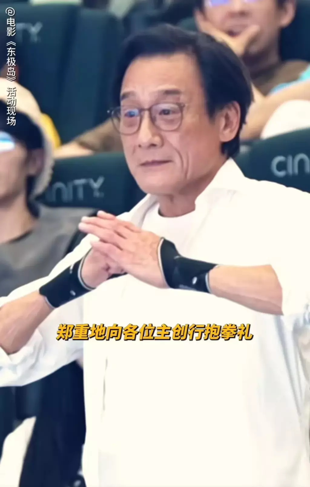 著名演员梁家辉泪洒活动现场,他以抱拳礼致敬勇敢善良的渔民先辈,也致敬将这个故事搬上大银幕的全体主创。