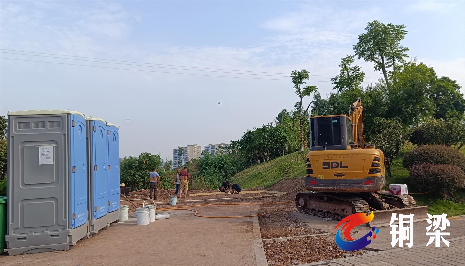 8月8日上午,在龙腾大道西段路边的一处空地上,停放着一辆挖掘机,几名工人正在进行新建厕所的平场施工作业。据施工现场负责人冉少鹏介绍,新建厕所为装配式移动厕所,厕所整体在厂家车间内建造完成,再通过吊装的方式安装到当前施工位置,接好电线、水管、排污管就可直接使用。
