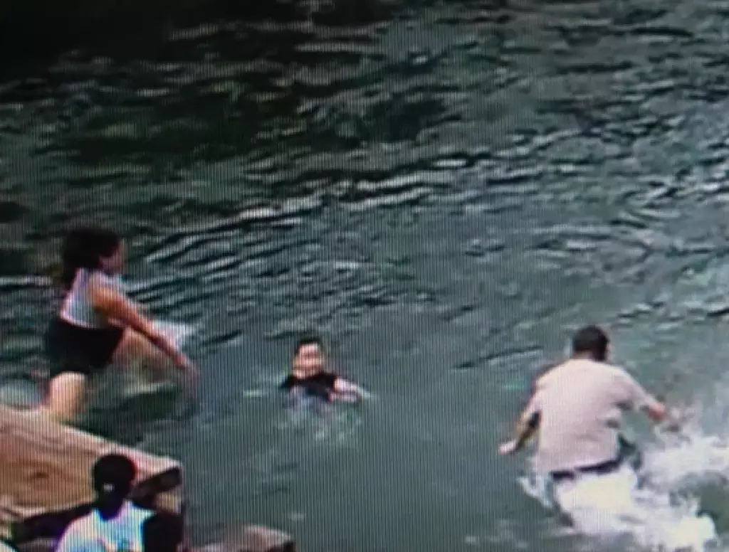 监控画面清晰记录了救援过程,危急关头,一位正在附近桥上行走的外国女游客和岸边男孩的爷爷,几乎同时毫不犹豫地跳入水中。外国女游客动作迅速,率先抓住了被水冲走的小男孩,并紧紧抱住他防止其再次被冲走。在两人默契配合下,不到30秒就将小男孩成功救上岸。
