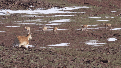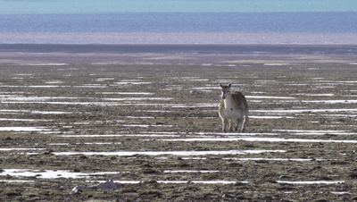 正在埋头吃草的藏羚羊显然对这只新来的“伙伴”充满了好奇,纷纷停止觅食,抬起头来,打量着这个有点不一样的“新人”。很明显,机警胆小的藏羚羊只是有点好奇,“新人”的“妆感”并没有把它们吓跑。终于,这只有点特殊的“藏羚羊”成功入群,成为卓乃湖畔成千上万只藏羚羊中的一员。