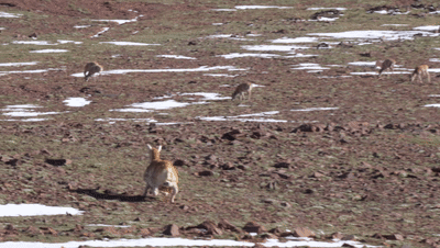 不像其它藏羚羊一边啃草一边走动,这只“藏羚羊”一直昂着头,“小心翼翼”却又坚定执着地一点点靠近藏羚羊群。