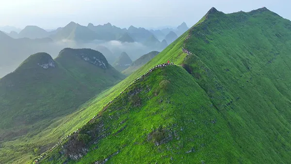 据悉,广西崇左市天等县的剑龙山近年来成为了新的网红景点,各地网友在节假日蜂拥而来,拍下海量视频、图片上传多个社交平台,引起打卡热潮,吸引了更多的网友关注和前来攀登。