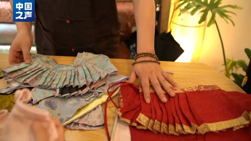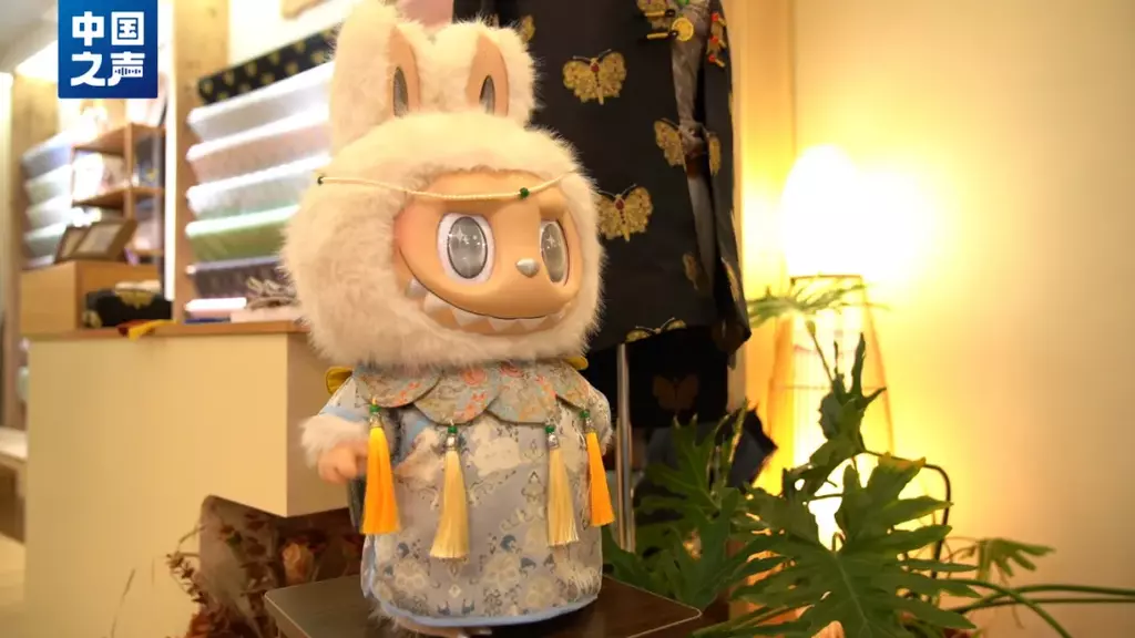 “娃衣”设计师瞿敏娜坦言,随着年轻消费者个性化需求越来越强,“娃衣”的设计正不断更新,有的店铺甚至从“周更”变成了“日更”。“越来越多的人喜欢新中式,我们把大人的衣服转换成LABUBU家族的衣服,给它设计了旗袍、云肩。做出来以后受到好多人的喜欢,大家都来拍照。”