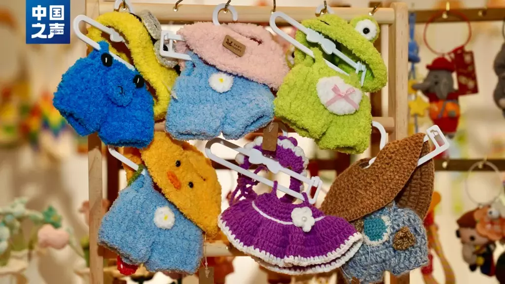 在浙江桐乡,一家开了20多年的老牌服装公司最近开始进攻新赛道——针织文创。货架上的毛线娃娃有的穿着巴掌大的针织毛衣,有的套着针织蓬蓬裙,格外惹眼。五颜六色的毛线在00后设计师手中,变成了一个个精美的小物件。